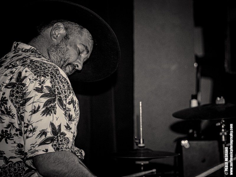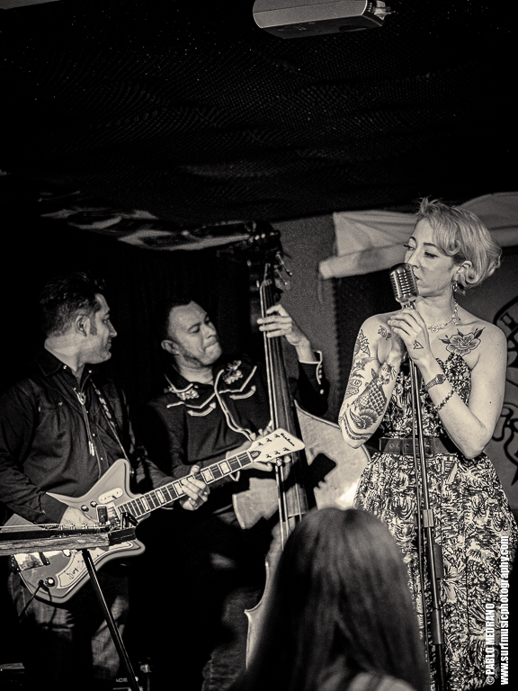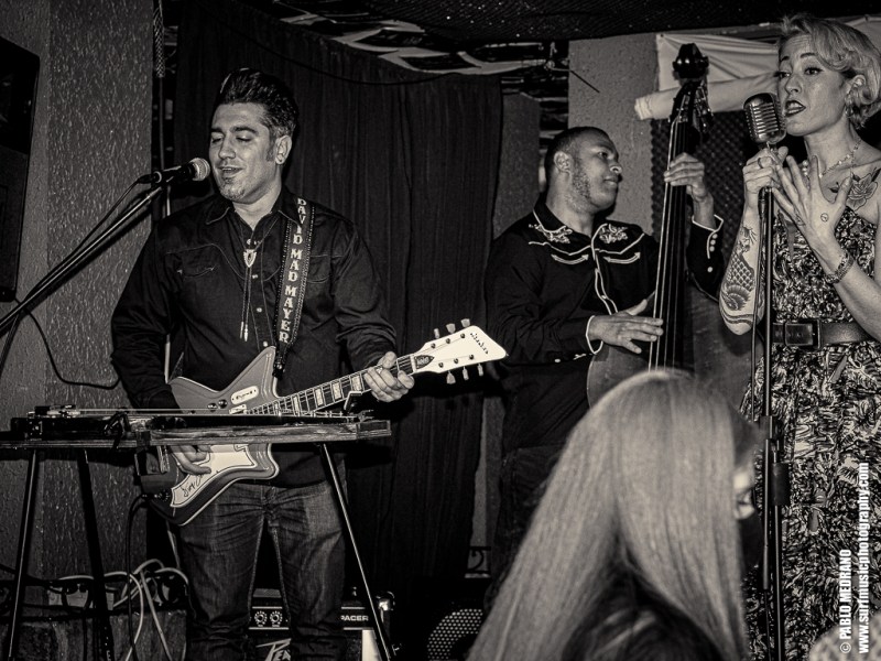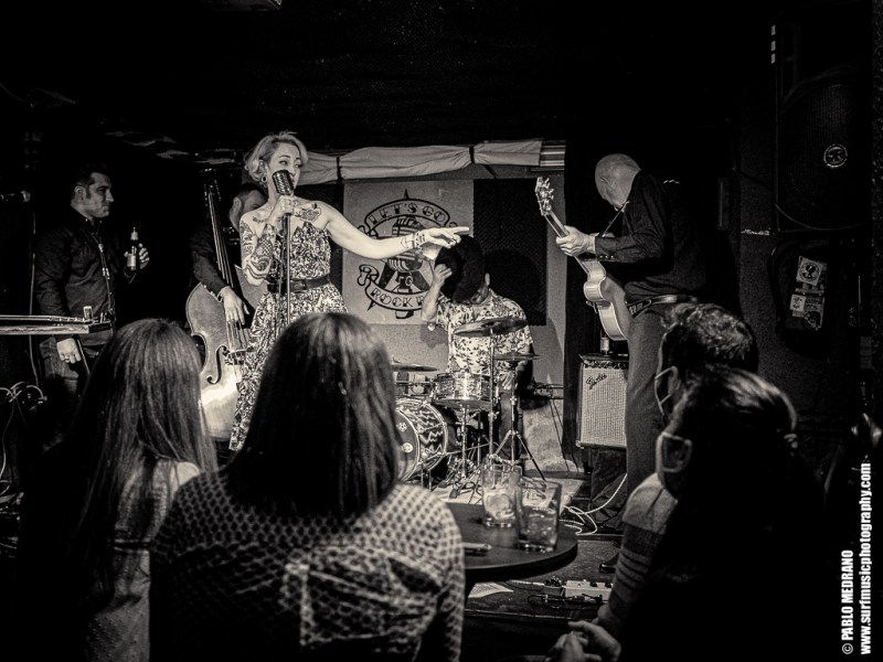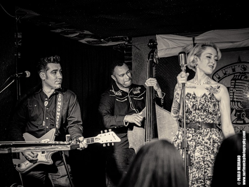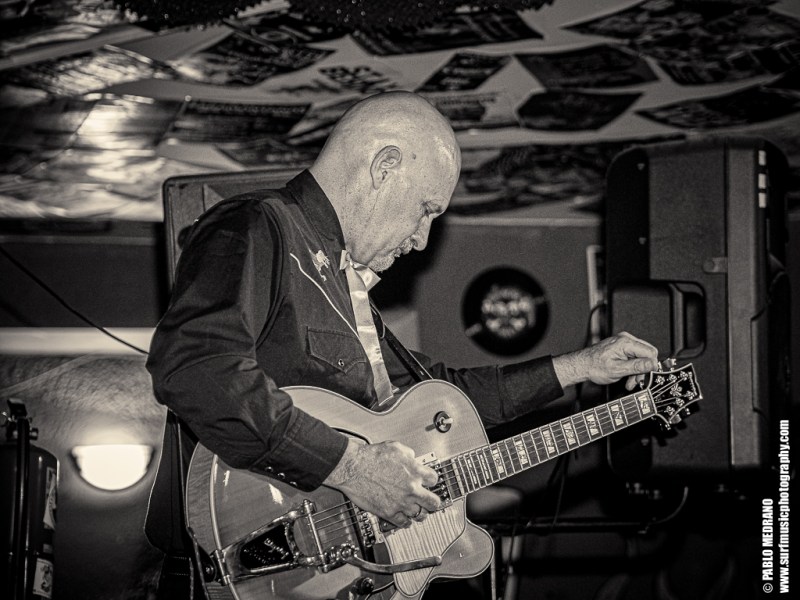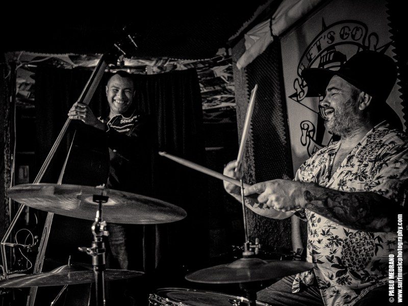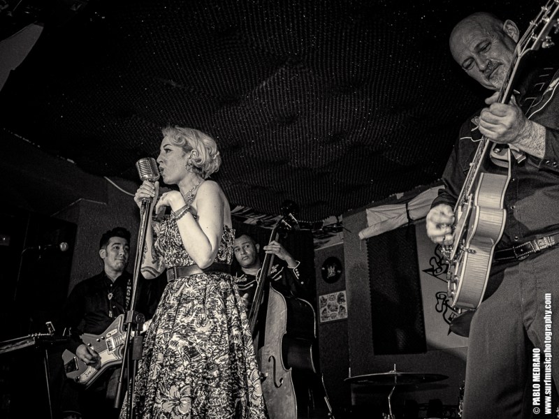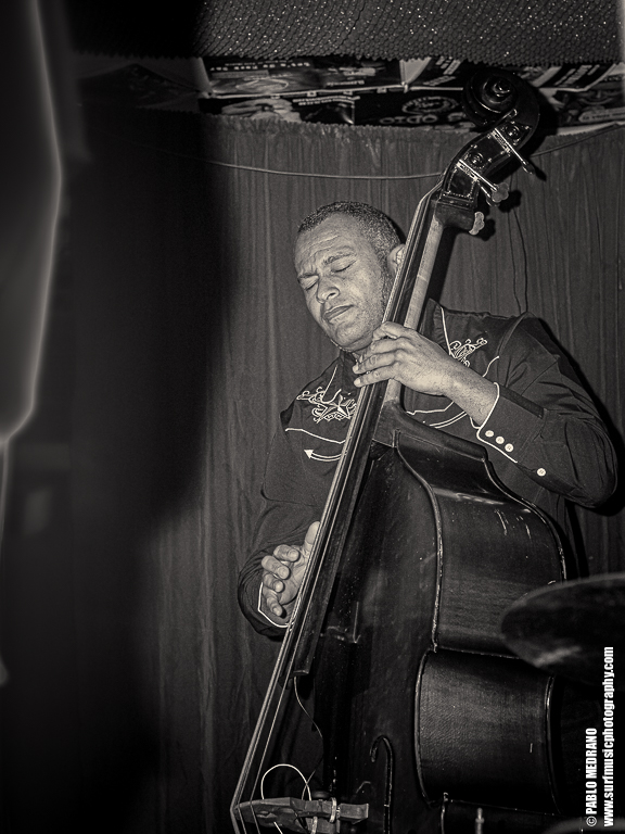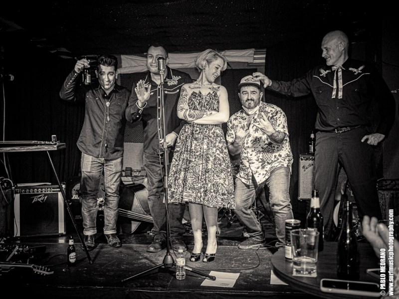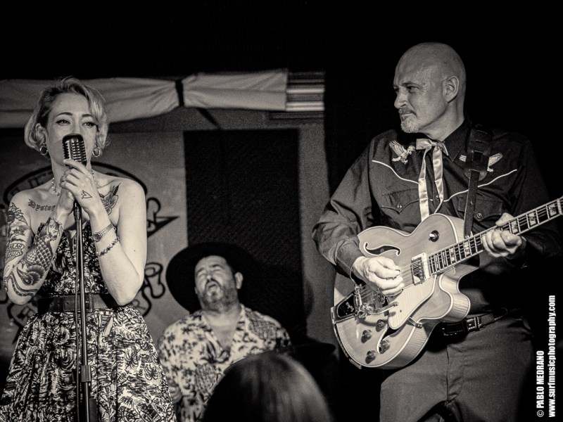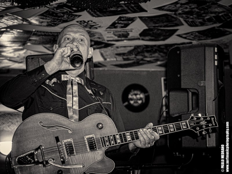 Y en cada ocasión que veo a este grupo le voy cogiendo más el tranquillo, porque aunque no soy experto en esta música, me lo paso en grande. Me lleva hasta ellos que sus miembros tocan en varias de las más importantes bandas surf españolas: Emilio y Pedro en Echo Express, Dani en los Winston Lobo, y David en los Daytonas. Ahí es nada. Músicos de categoría que con Sui al micrófono aseguran una hora muy entretenida cabalgando por el rockabilly, el country, el hilbilly y no sé cuantas cosas más.