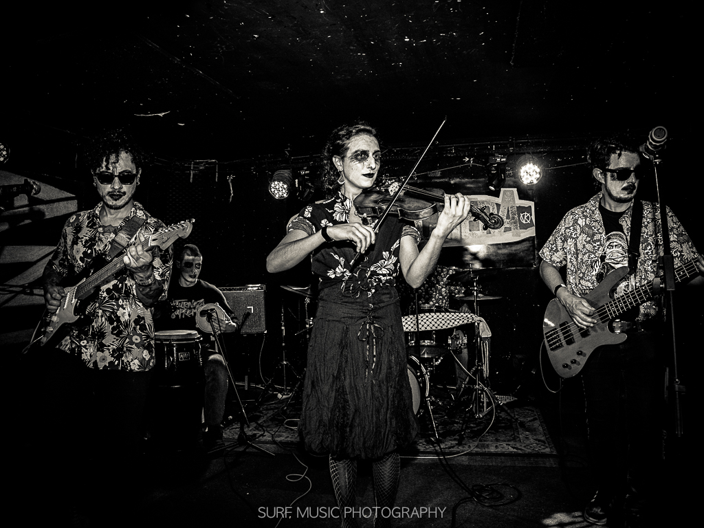 Desde Colombia, una banda sorprendente. Fusionando cumbia y surf, con toda la intención y con óptimo resultado. ¡Y encima con violín! Doy fe de que el público que abandona sus prejuicios disfruta tremendamente de esta mezcla y no se puede resistir a menear el esqueleto. Y lo que empieza con unos tímidos pasos de cumbia termina en un pogo a tumba abierta.